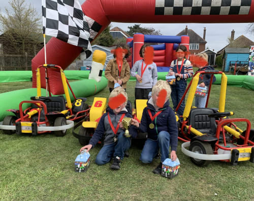 We are a mobile company Coming to a location of your choice Additional fees. Our electric go karts for kids are ideal for drivers not yet old enough to experience the thrill of the full International circuit. Check out our great value go-kart party packages and our huge choice of bouncy castles for hire in Essex and talk to our team about your next event today.